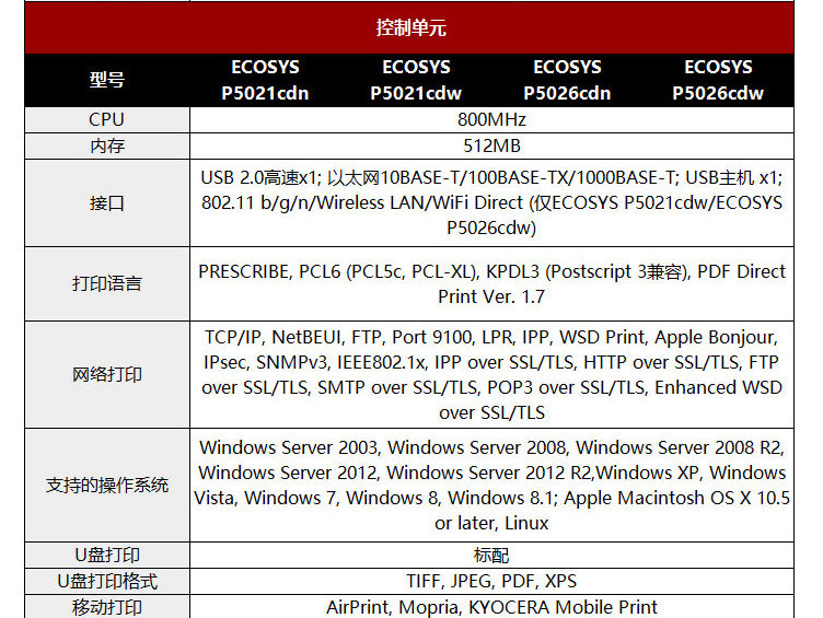 參數(shù) [品牌] 京瓷 [型號] P5021cdn