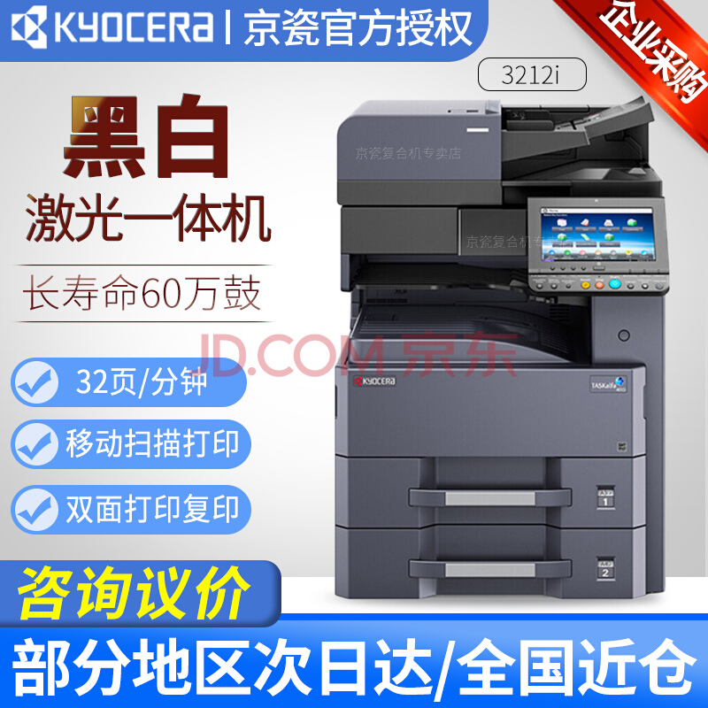 京瓷3212i A3黑白激光打印復印一體機辦公商用 (32頁/分鐘) 雙層紙盒+輸稿器